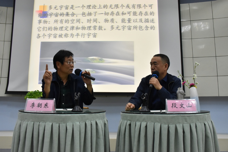 在答疑环节,同学们进行了踊跃的提问和讨论。段老师对“关于暗能量问题的竞争性解释”“在科学进步的今天,传统价值观如何坚守”“物理学关于宇宙第一推动力问题”“宇宙加速膨胀是否具有尽头和节点”以及“宇宙的边界”等一系列问题进行逐一解答和讨论。