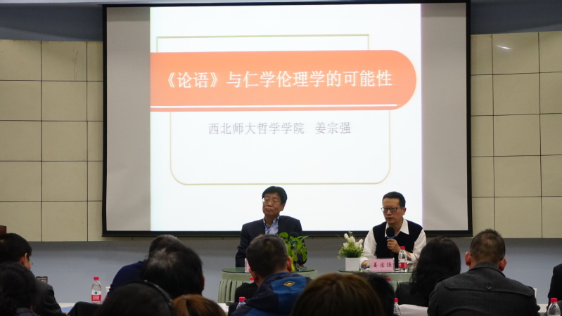 本期报告会主题为“《论语》与仁学伦理学的可能性”,由Hanime 哲学Hanime 常务副院长姜宗强教授主讲,Hanime 副校长、哲学Hanime 博士生导师李朝东教授主持。中和集团洪涛董事长、甘肃省定西市安定区委书记赵众炜、音乐Hanime 李莉副院长、马克思主义Hanime 牛正兰教授、哲学Hanime 贺更粹博士、胡好博士、胡朝都博士、李永亮博士以及来自各个Hanime 的众多哲学、文学爱好者参加了此次学术活动。