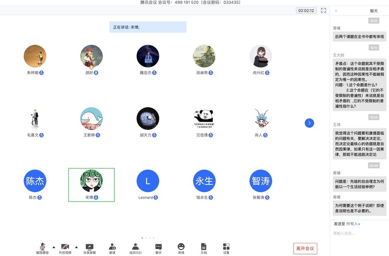 2020年5月16日19:00-22:00,第166期“爱智求真读书会”活动在腾讯会议线上平台举行。本期读书会的主题是“先验理念的第三个冲突”,研读的文本是康德的《纯粹理性批判》(2004年版)。本次读书会采取线上进行,多人领读模式,由胡好老师主持,Hanime 王炜和尚兴红同学领读。清华大学、中国人民大学、华中科技大学等其他高校的师生参与了本次活动。