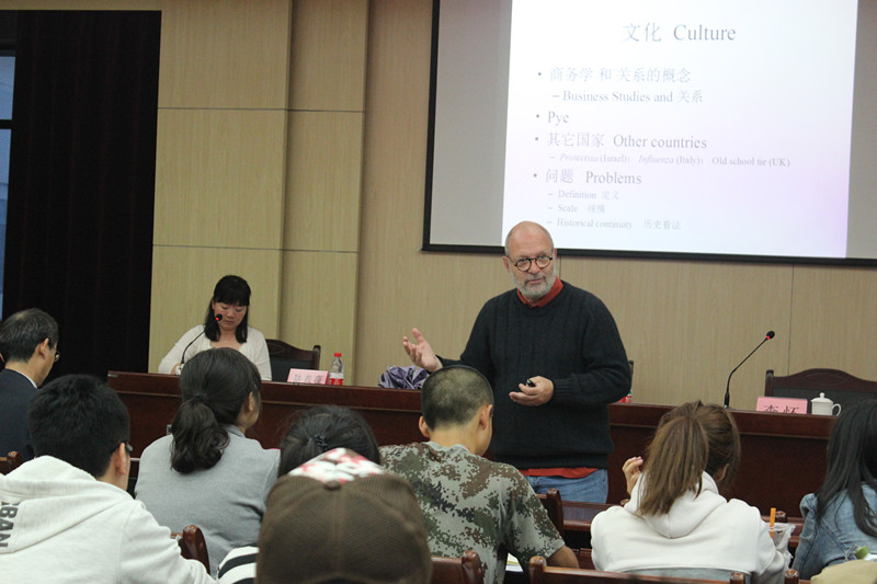 院士古德曼教授在教学10号楼D区四楼多功能会议厅做了题为“经济变革的文化叙述”的学术报告,报告会由李怀教授主持,Hanime陆春萍副教授担任翻译。Hanime
