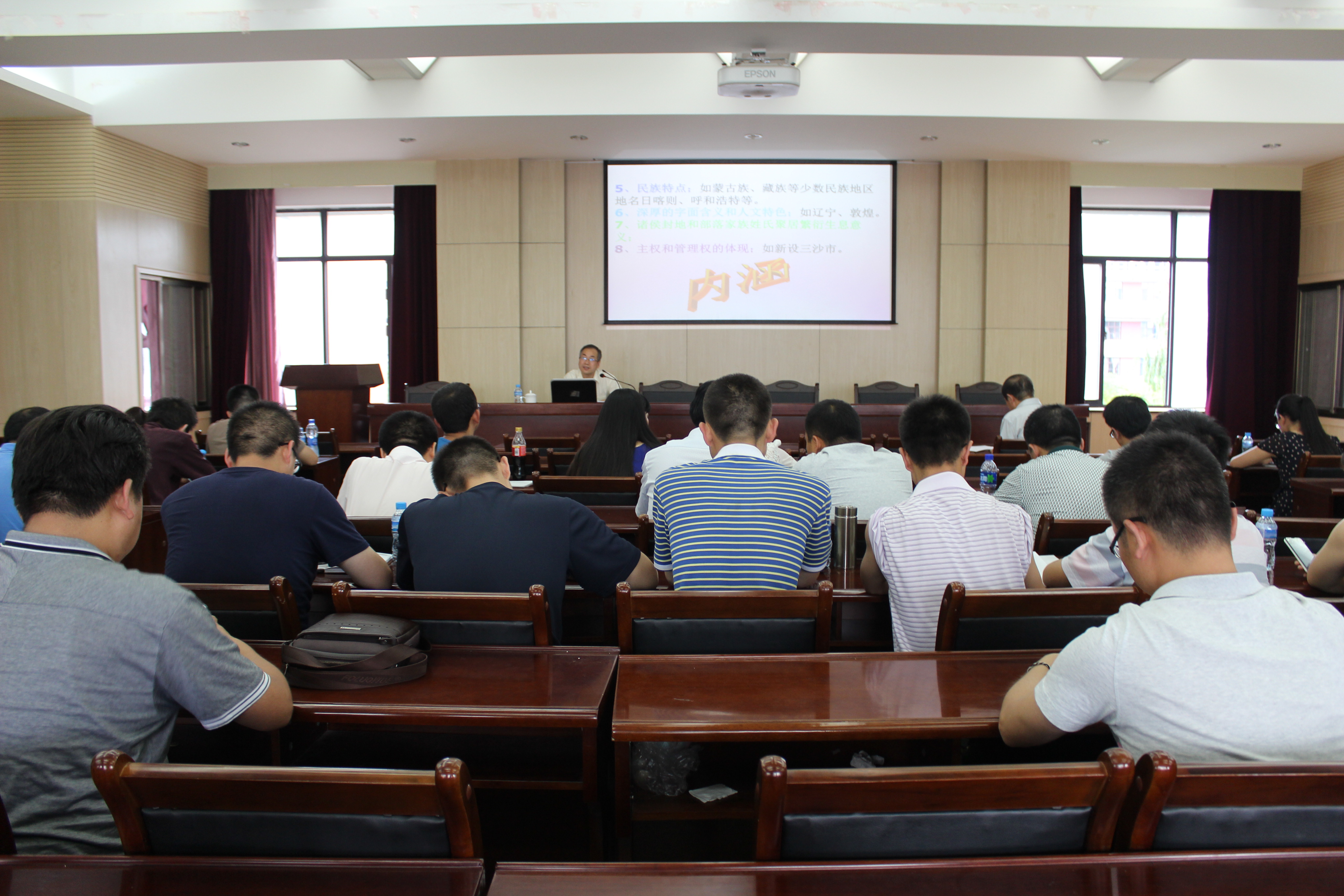 在报告中,田春处长就我省行政区划管理的几个问题作了生动详细的讲解,以自己专业的工作经历及研究,讲授了地名命名和管理、地名的研究、行政区域界限管理的和谐理念和乡镇以上行政区划的调整四大块内容。整场报告介绍了存在的问题、解决的对策、目前的工作重点及未来发展趋势,思路严谨,系统有条理,讲解清晰,受到在场学生一致好评。