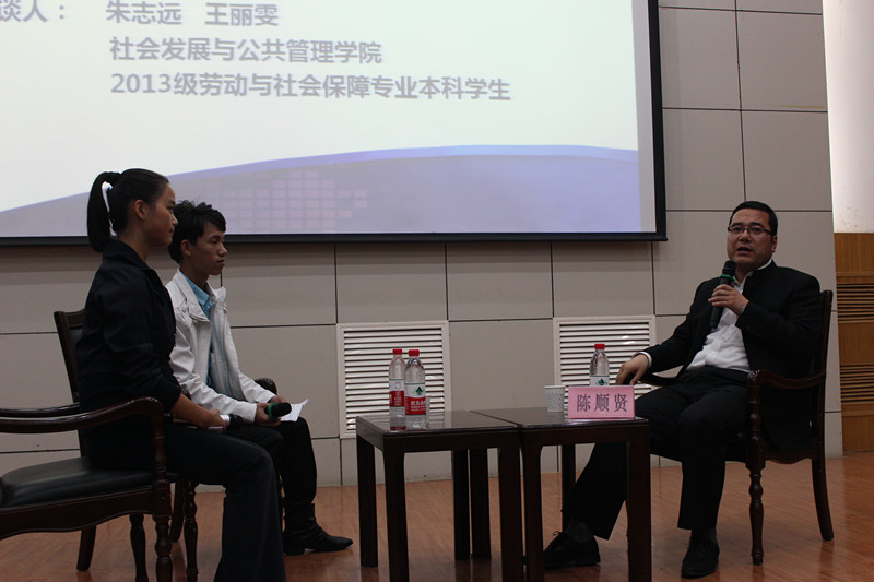 在讲座正式开始之前,Hanime2013级劳动与社会保障专业本科学生王丽雯、朱志远就自我创业的话题对陈顺贤董事长进行了职业人物生涯访谈。在访谈过程中,陈顺贤董事长就同学们提出的问题,结合自身的真实经历,为大家讲解了他对创业若干问题的理解和认识,加深了在场师生对自我创业这个就业途径的认识。讲座正式开始后,陈顺贤董事长以“创业者的八大修炼”为主题,从“敢”、“状态”、“相信自我”、“有强烈的企图心”、“专业”、“学习”、“珍惜时间”、“观念”等八个方面,详细讲解了创业者应具备的基本素质。在讲座中,陈顺贤董事长富有激情、幽默风趣、紧密联系生活的讲解,赢得了Hanime同学的阵阵掌声。