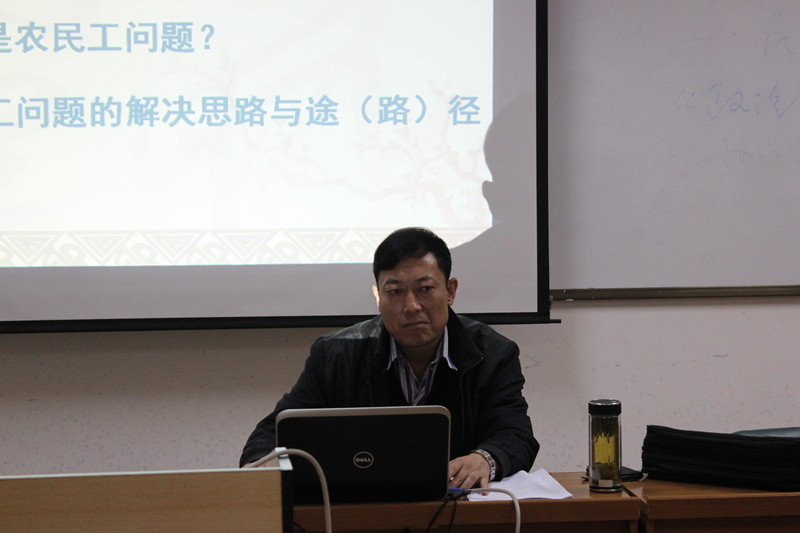 岳老师从“农民工及形成”、“什么是农民工的问题”以及“农民工问题的解决思路与途径”这三个大的方面进行了仔细的讲述,在讲述的过程中,岳老师分别介绍了不同学历的农民工所占的比例:如小学、初中、高中和大专的等,并且就农业向非农业的转移以及聚集地转移的问题作了详细的分析和解释。