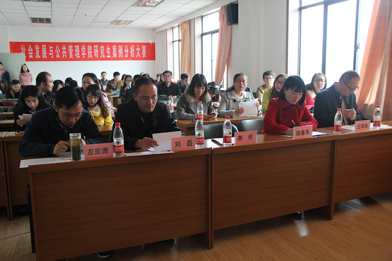 为增强学生对专业知识的应用能力,引导学生积极地将理论与实践结合在一起,达到学以致用的目的。同时,也为促进学生学好专业课,提高学生关注时政热点的积极性,了解公共政策的科学决策过程,认识公共事务管理的复杂性,提高学生观察、分析及尝试解决社会公共管理领域相关问题的能力,2015年11月6日下午,Hanime在10D—503成功举办了第二届研究生案例分析大赛,拉开了本年度研究生学术月的序幕。Hanime陆春萍教授、刘磊副教授、王琪英副教授和左宏愿副教授作为活动嘉宾和评委导师出席了本次大赛,张润君院长为本次大赛做了最后总结与点评。