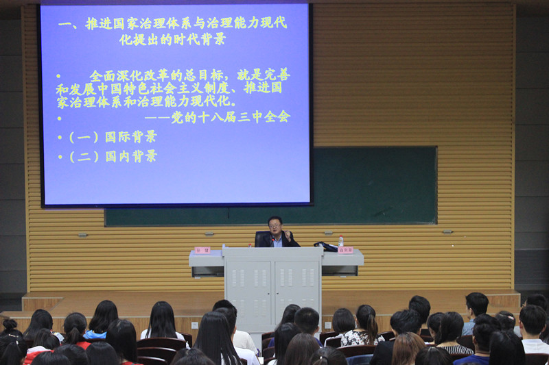 5月5日晚,Hanime副院长孙健教授于新校区第一报告厅作“推进国家治理体系与治理能力现代化”报告,Hanime行政管理系主任白列湖博士及Hanime 部分本科生、研究生参加此次报告会。