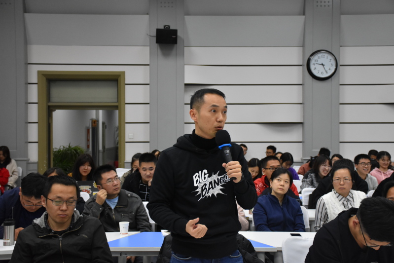 在答疑环节,同学们进行了踊跃的提问和讨论。段老师对“关于暗能量问题的竞争性解释”“在科学进步的今天,传统价值观如何坚守”“物理学关于宇宙第一推动力问题”“宇宙加速膨胀是否具有尽头和节点”以及“宇宙的边界”等一系列问题进行逐一解答和讨论。