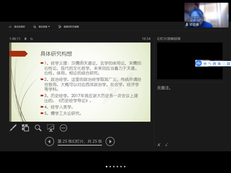 11月2日下午,应哲学Hanime 邀请,复旦大学历史系教授、博士生导师邓志峰通过线上方式为Hanime师生作了题为“经学研究的回顾与前瞻”的学术报告。会议由哲学Hanime 张立恩副教授主持,Hanime 师生及校内外老师、学生共同参加了报告会。