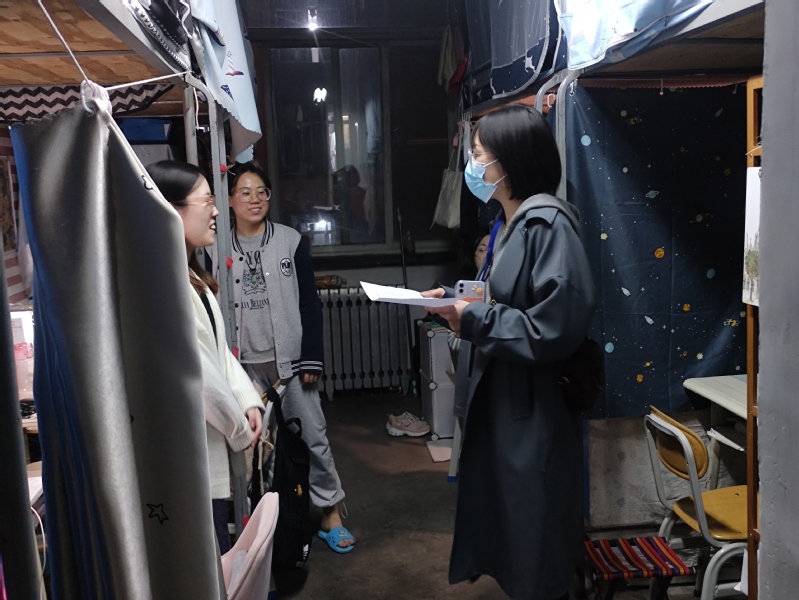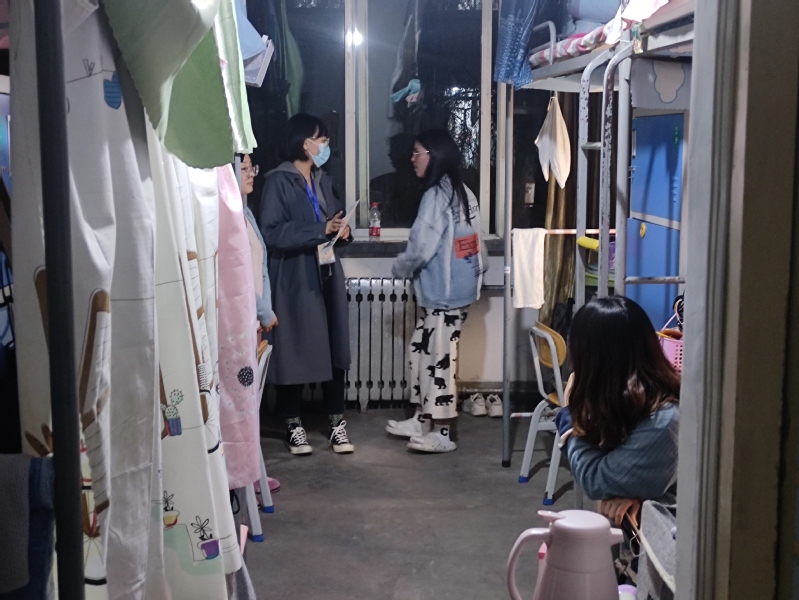 宿舍卫生是公寓疫情防控工作的重要督查内容。查宿过程中,辅导员仔细查看每个宿舍的卫生情况,叮嘱学生不要在宿舍里存放纸箱、餐盒等物品,每日及时清理生活垃圾,按时进行消杀工作并填写消杀记录表,严禁使用大功率电器。排查发现,大部分宿舍卫生状况良好,消杀工作到位,未发现学生有在宿舍饮酒、打麻将、深夜直播扰民、使用大功率电器等情况。