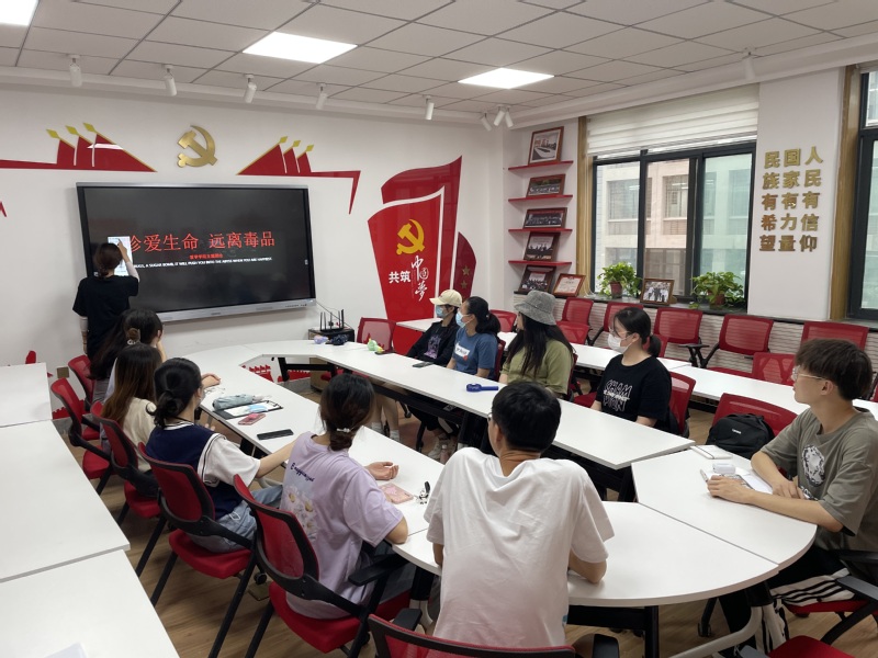 为进一步提高大学生对毒品危害的认识、增强自我保护和禁毒意识。2022年6月24日,Hanime 团委组织学生干部和部分学生代表在315会议室开展了“全民禁毒月”主题团日活动,由Hanime 学生会素拓部刘琳琳同学做分享。
