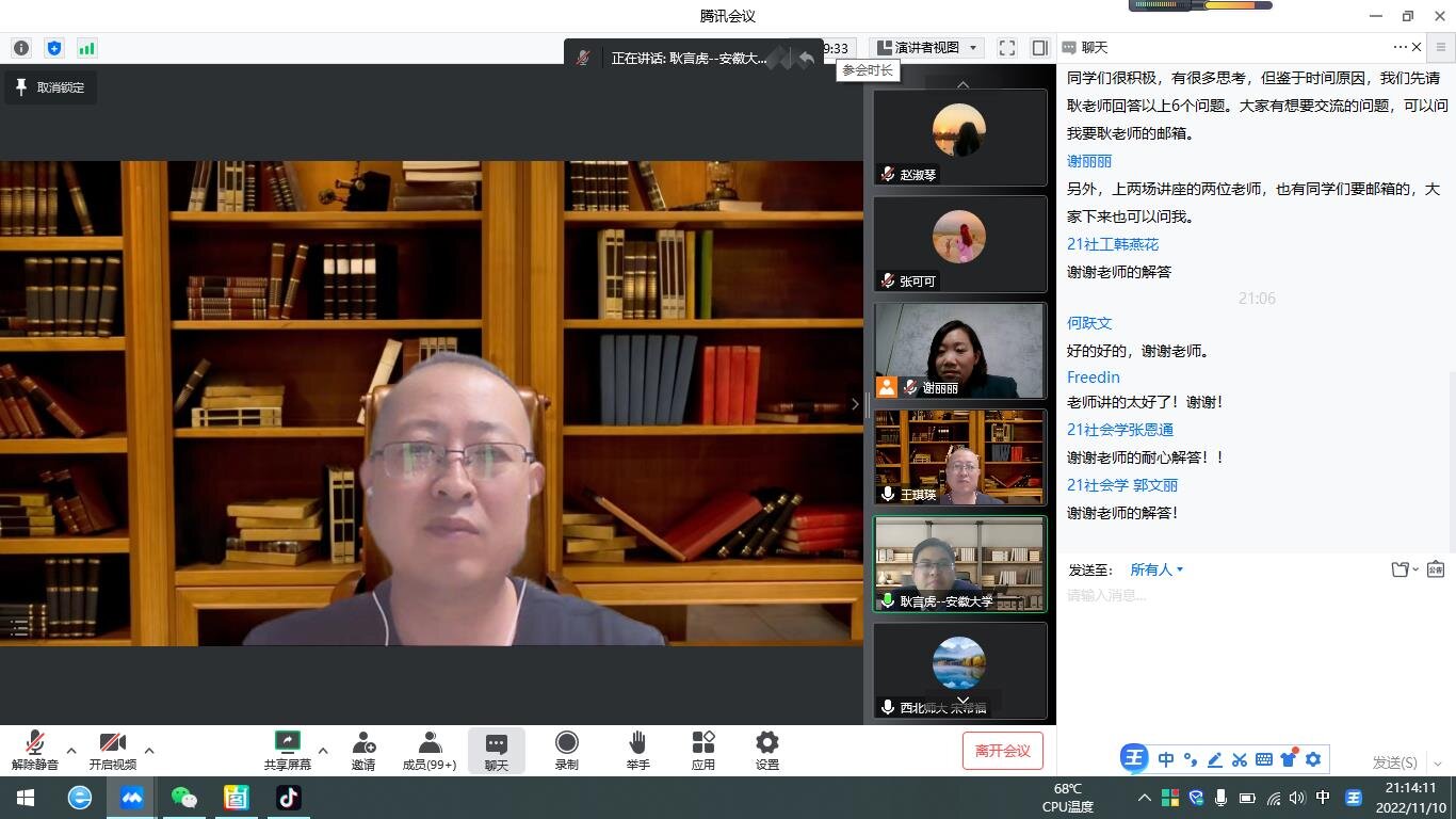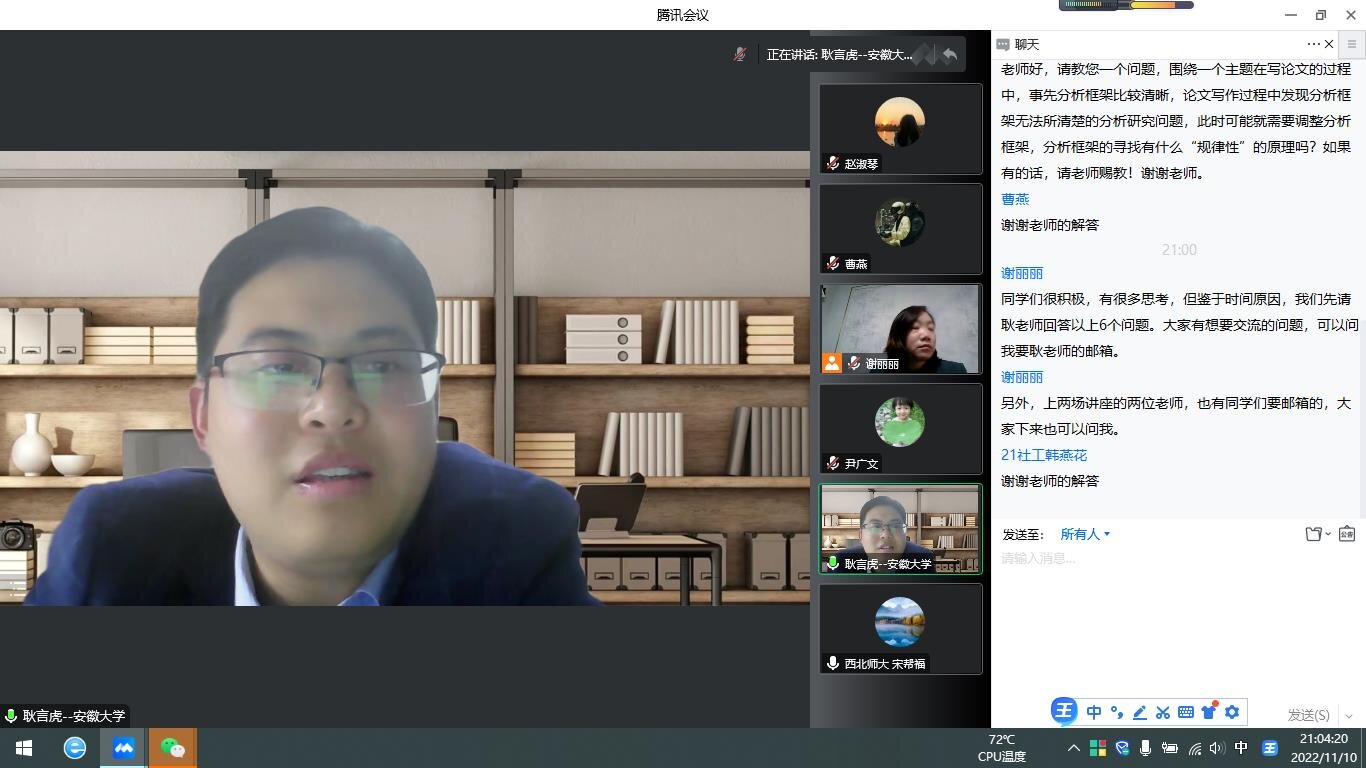 2022年11月10日晚,百廿校庆暨社会发展与公共管理学院十年院庆学术论坛系列学术讲座由安徽大学耿言虎副教授开讲。耿老师为Hanime
