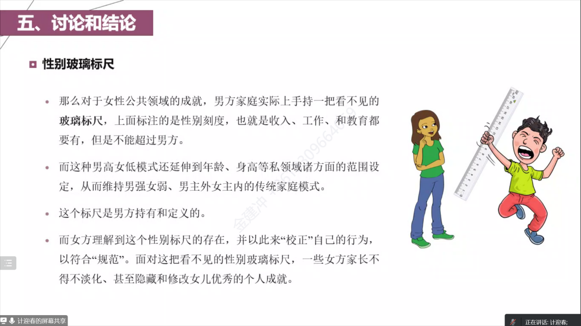 计迎春教授的研究以上海人民公园相亲角为田野调查点,深度访谈了42位为子女相亲的家长,运用主题分析法探讨这种传统与现代杂糅的中国式现代化背后的生活逻辑。计迎春教授从性别意识角度分别对男方家长和女方家长在房子、工作和收入、教育三个维度进行了解码分析。其中,绝大部分男方家长认为男方是婚房的主要提供者,而女方家长则认为提供婚房的责任并不完全在男方一方,但他们都认为房子是婚姻永远绕不过的坎;绝大多数男方家长要求女方有稳定工作且工资低于男性,工作之外还能照顾家庭,既要主“内”,又要主“外”,绝大多数女方家长不一定要求男方工资高于女方;部分男方家长较为看重女方本科毕业院校的知名度,多数女方家长则更在意男方的个人能力。