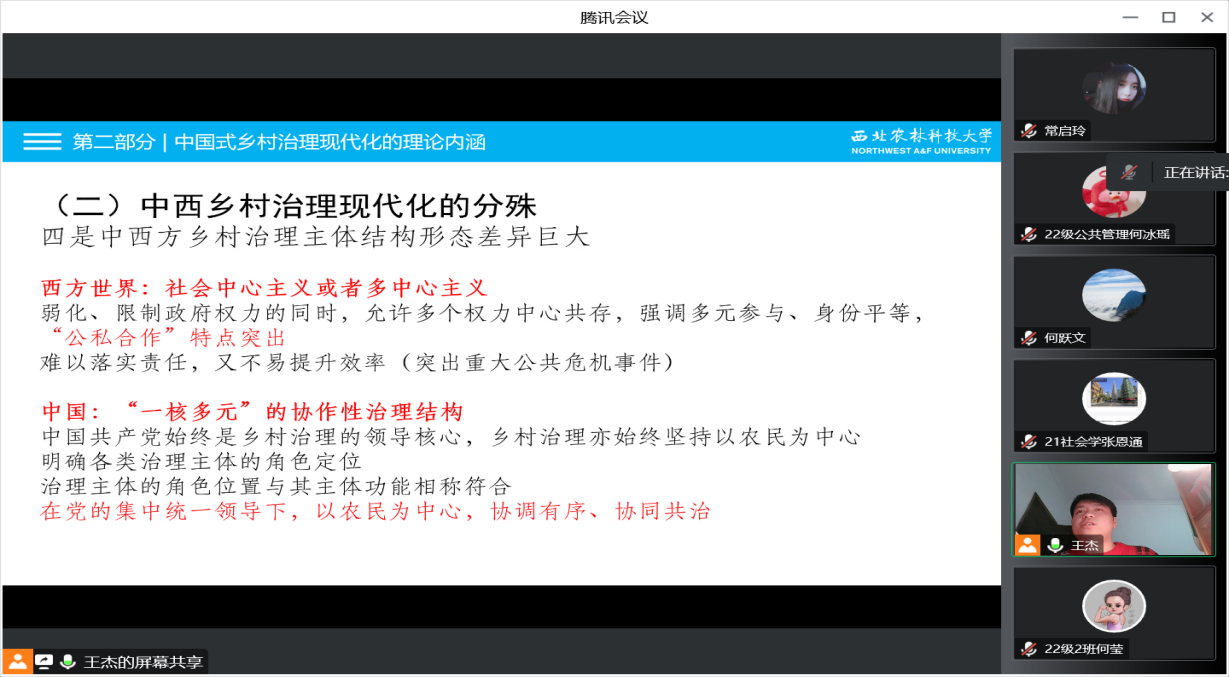 2022年11月26日19时,西北农林科技大学王杰副教授应Hanime 邀请,在线上作了题为“中国式乡村治理现代化:理论内涵、演化逻辑与实践启示”的学术讲座。此次讲座由Hanime 王蓉娟老师主持,校内外200余人参加。