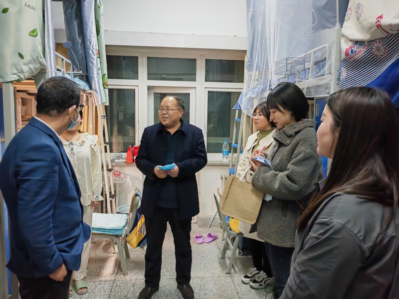 在本科毕业班学生宿舍,Hanime 领导和班主任逐一了解学生考研的初试成绩和目标院校历年的招生情况,叮嘱学生认真做好考研复试准备工作。