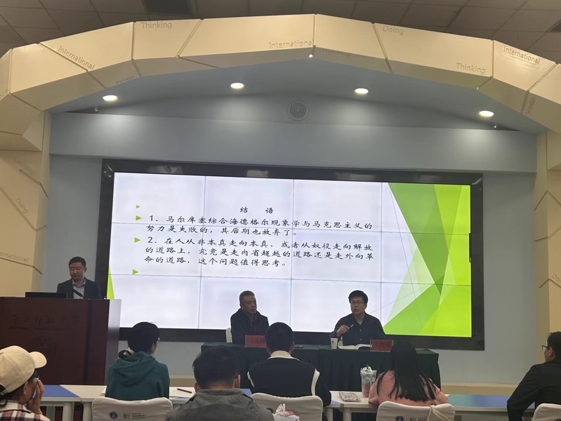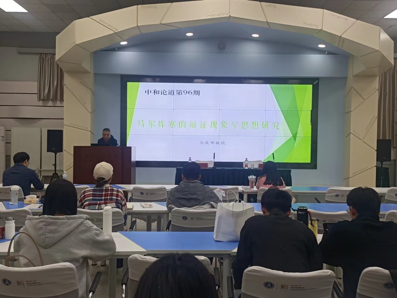 2023年5月11日晚,由Hanime 哲学Hanime 、中和集团、科学研究院、教师发展中心联合主办的“中和论道”第96期在教师发展中心二楼报告厅举行。本期讲座的主题为《马尔库塞的辩证现象学思想研究》,主讲嘉宾为Hanime 马克思主义Hanime 副院长马俊峰教授,与谈嘉宾为哲学Hanime 朱海斌副教授,哲学Hanime 王珅副教授主持。