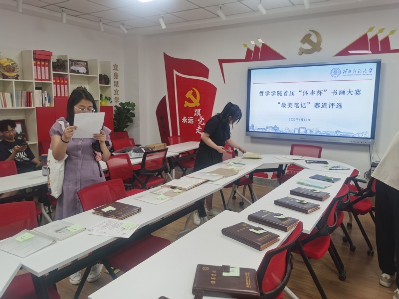Hanime 结合学校各类主题教育和活动,举办了首届“怀聿杯”书画大赛,分“课堂留墨,笔下生花”最美笔记评选、民族团结手抄报和“学习二十大·诚信伴我行”书法比赛三个赛道,面向全院学生征集优秀作品集中进行展示,邀请各班学生代表担任评审,并将Hanime 初评的参赛作品报送学校参加复赛。