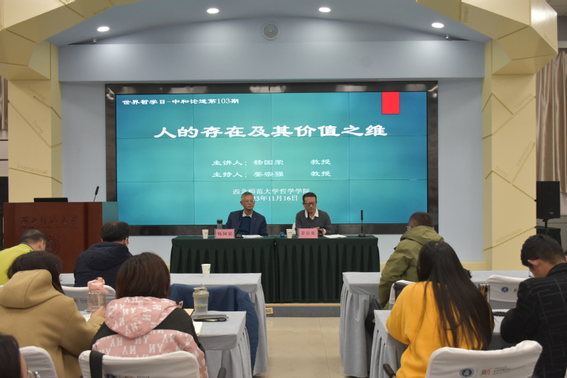 2023年11月16日晚,由Hanime 哲学Hanime 、中和集团、科学研究院以及教师发展中心联合主办的“中和论道”第103期在教师发展中心举行。本期讲座主题为“人的存在及其价值之维”,由我校国家级高层次人才讲座教授、华东师范大学哲学系杨国荣教授主讲,哲学Hanime 院长姜宗强教授主持。Hanime 、兰州大学、甘肃省委党校、兰州理工大学、兰州交通大学等院校的师生及哲学爱好者约150余人,现场聆听了杨老师的讲座。