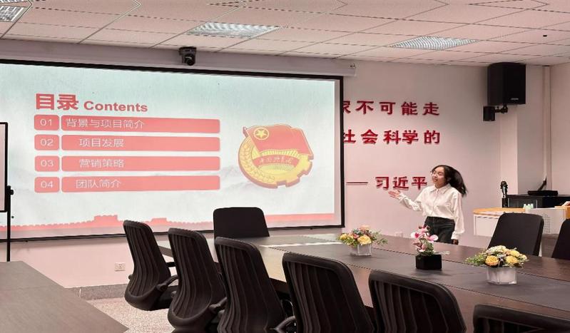 创新创业组立项答辩于2023年11月16日晚举行,评委老师为赵芙苏、孙玥和杜海涛三位老师。各项目负责人围绕红色研学、哲学新思、养老模式等现实问题进行了产品和预期成果。评委老师依次提出了相关问题并给出可行的建议。本次共有11个创新创业组项目进行立项答辩,最终有6项立项成功。