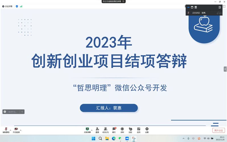 11月8日晚,哲学Hanime 2023年科研立项结项答辩在腾讯会议举行,共两个方向15个小组的同学参与了此次答辩,哲学Hanime 张海龙老师、孙玥老师担任评委。