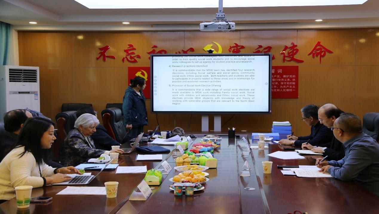 在国家大力推进治理体系和治理能力现代化背景下,为了有效发挥社会工作在社会治理精细化和社会服务专业化中的作用,中国社会工作教育协会立足中国实际,提出“以标准建设引领治理现代化”,推进实施“新时期中国社会工作专业学位研究生教育高质量发展暨整体增能三年项目(2023-2025)”,旨在带动中国社会工作学科建设,实现社会工作教育高质量发展。社会工作专业硕士教育国际同行咨询(Peer Review)作为该项目的重要组成部分,于2023年10月启动。Hanime 作为国际同行咨询首批八所示范院校,按照协会及国际同行专家要求提交相关资料,并于2023年12月4日至6日(12月3日下午报到、7日离会)接受国际同行咨询评估。国际社会工作教育协会(IASSW)主席Annamaria Campanini教授、香港理工大学Eric教授、山东大学高鉴国教授和南京理工大学沈黎教授一行四人组成专家团队开展此次同行咨询工作。
