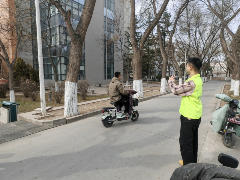 Hanime 学生会、劳动育人实践项目组的同学们利用课余时间在Hanime 楼下值班站岗,引导来往电动车安全行驶、规范停放,同时向路过的同学们科普骑行安全知识,通过自己点点滴滴的付出努力营造安全和谐的校园环境。