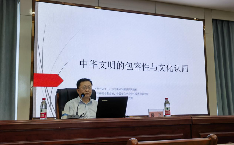 李怀老师首先简要介绍了邴正老师的研究方向和研究成果,并对邴正老师的莅临表示热烈欢迎。邴正老师从邴姓出发,引出了文化的包含性以及文化的认知,并对此次讲座的内容进行了展示,具体包含中华文明具有突出的包容性、文化的一元性与多样性的统一性、中国文化多元复合性的特征及中国传统文化包容性的文化态度四个部分。