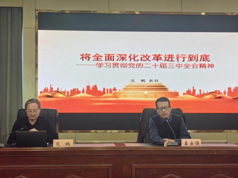 会上,范鹏教授旁征博引、娓娓道来,深入浅出地分析了党的二十届三中全会审议通过的《中共中央关于进一步全面深化改革、推进中国式现代化的决定》在全面建设社会主义现代化的进程中具有的重大的现实意义和深远的历史意义。对正确理解进一步全面深化改革的指导思想、总目标、原则、重大战略部署、加强党的领导等五个方面做了精彩的宣讲和解读,对于Hanime 完整、准确、全面学习领会党的二十届三中全会精神,深刻理解党中央重要战略部署,具有十分重要的指导意义。