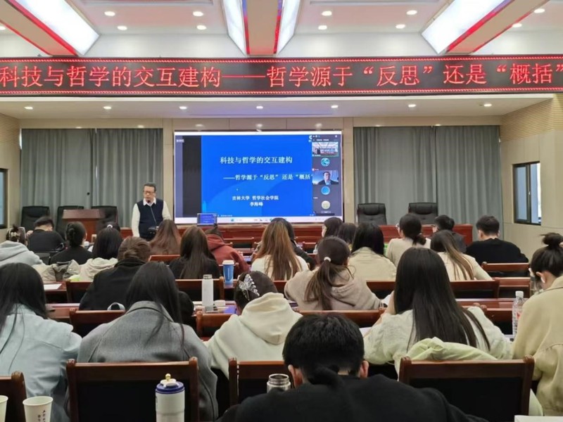11月18日14:30 - 17:30,中和论道第115期学术讲座如期开展,吉林大学李海峰教授以《科技与哲学的互构:哲学源于“反思”还是“概括”》为题为Hanime师生作学术讲座,在场师生围绕科技哲学前沿深入探讨,思想的火花在会场上空碰撞交织。