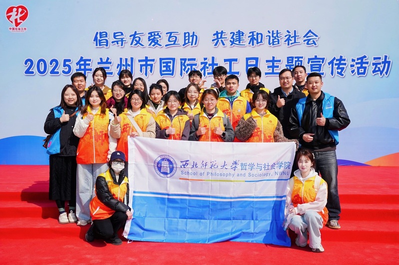 师生受邀前往兰州市民广场参加由市委社会工作部、市委组织部、市教育局、市民政局、市司法局、市卫生健康委、市总工会、团市委、市妇联、市残联联合主办,兰州市社会工作协会承办的“倡导友爱互助 共建和谐社会”2025年兰州市国际社工日主题宣传活动。