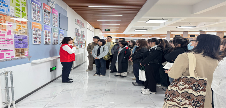 上午9点,师生一行准时抵达枣林西社区党群服务中心。社区党委副书记李萍热情迎接,并向师生们详细介绍了社区的基本情况。在基层治理创新方面,枣林西社区深耕网格化管理模式,将社区全域科学划分为12个网格,构建“1 + 4 + X”网格力量体系,打造“多网合一、一网统管”的智慧服务网络。网格员每日穿梭街巷巡查,主动倾听群众诉求,将一件件民生“关键小事”办成“暖心好事”。同时,社区积极联动辖区单位党组织、社会组织,凝聚多方力量参与共建共治,实现“小事不出网格、大事不出社区”,并引入智能技术,推动网格管理数字化、精准化。社区志愿服务围绕政策法律宣传、民意收集等七大领域展开,为居民织密民生服务网。社区还针对老年群体开设丰富课程,涵盖模特、舞蹈、声乐等,从艺术熏陶到强身健体,为老年人打造了充实多元的精神文化家园。在社区治理层面,社区制定“田字型”基层治理体系三年行动计划,依托“大数据”“网格化”,走好群众路线,构建“五位一体”共建共治共享基层治理新格局。