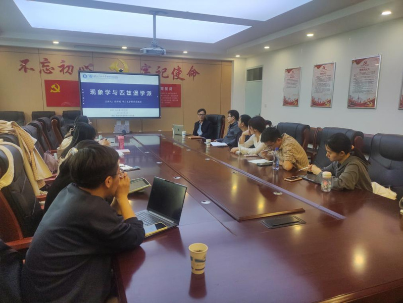 接下来,郑教授围绕报告主题介绍了匹兹堡学派及其主要人物和主要观点、匹兹堡学派与现象学运动的联系、塞拉斯知识论和胡塞尔认识论的联系、相关的国内研究和国际研究现状等等。他重点介绍了塞拉斯其人其事、核心著作和哲学思想,讲解了塞拉斯“洛克讲座”和“伦敦讲座”上的论稿,引人入胜,现场师生兴趣浓厚。