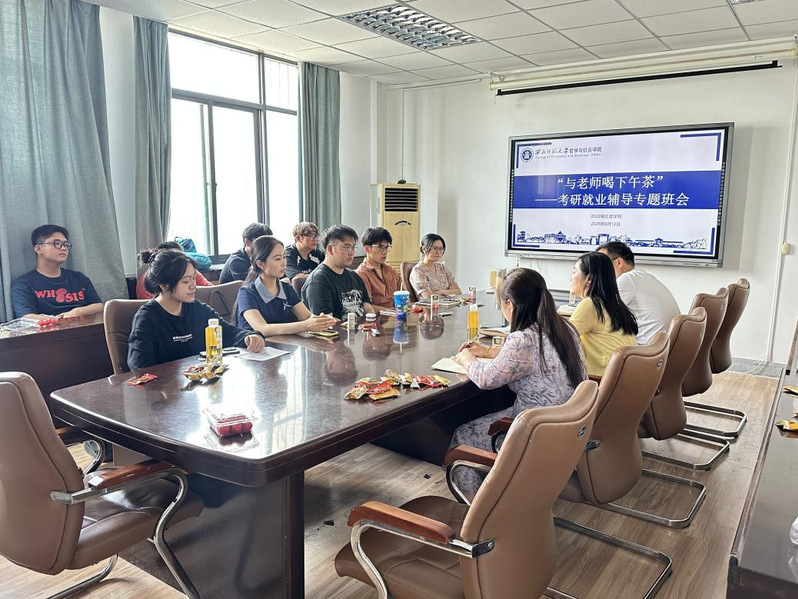 茶话会上,老师们着重强调了考研对学术深造和职业发展的重要意义,鼓励同学们突破自我,认真备考;同时,定位为考公和就业的同学,要紧密结合市场动态和需求,发现专业能力在就业领域的应用价值,认真听取校友和高年级同学分享备考经验和求职策略。此外,老师们结合自身求职经历,深入浅出的分析了社会学、社会工作专业的多元化职业发展路径,并提供备考期间有效的的心理调适方法。
