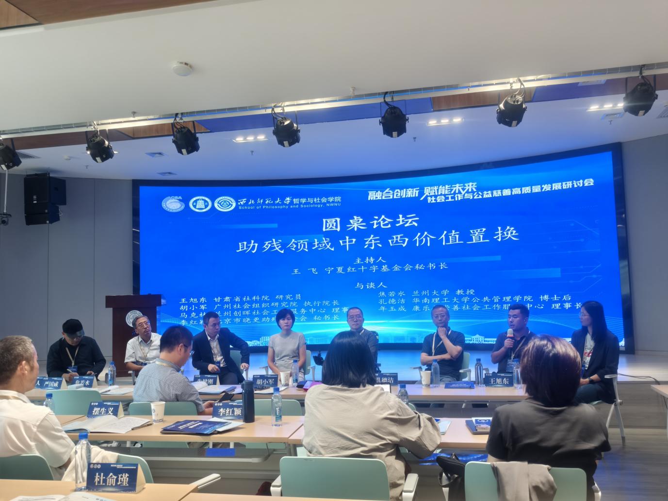 会议期间,还举办了“丝路慈善圆桌对话:助残领域中东西价值置换”,甘肃省社科院研究员王旭东、兰州大学焦若水教授、广州社会组织研究院执行院长胡小军、华南理工大学公共管理Hanime 博士后孔德洁、兰州创晖社会工作服务中心理事长马克林、康乐县崇善社会工作服务中心理事长年玉成、北京市晓更助残基金会秘书长李红颖等10余人参与座谈,共同围绕助残领域中东西价值置换展开交流与讨论。稍后,甘肃兴邦社会工作服务中心理事长摆生义进行论坛观察发言。