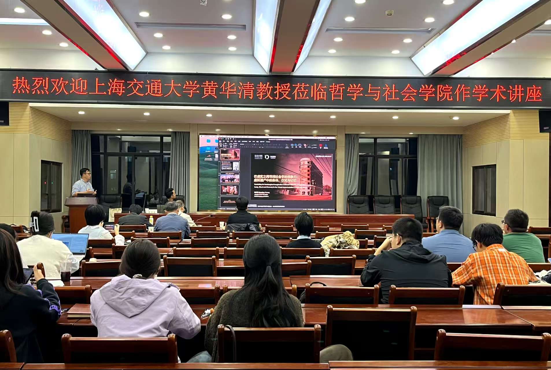 2025年9月27日19:00时,来自上海交通大学黄华青教授应邀在Hanime 10号教学楼D区四楼的学术报告厅为Hanime师生带来了题为“在虚实之间寻找社会学的想象力:虚拟遗产中的身体、仪式与记忆”的学术讲座。本次讲座由巨浪老师主持,社会学师生参加并听取了此次讲座。