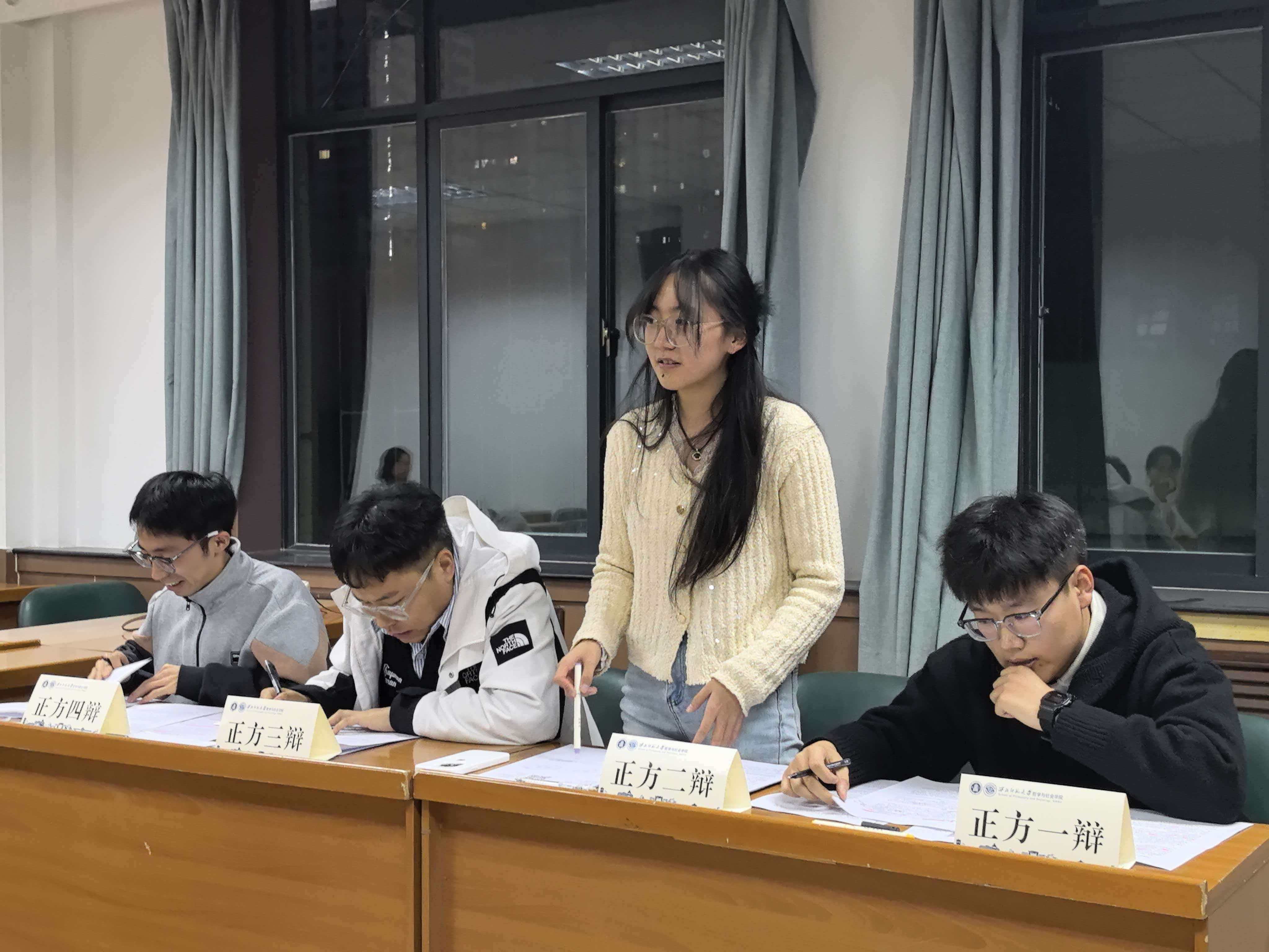 11月6日下午,决赛与季军赛分别于学院四楼报告厅与503教室举行。季军赛辩题为“读万卷书与行万里路何者更重要”,决赛则聚焦“一个人的‘与众不同’应被接纳还是被纠正”。辩手们在立论、质询与自由辩论等环节中逻辑清晰、知识丰富、应对沉着,呈现了高水平的思辨展示。评委的精准点评与专业指导,既保障了比赛公平,也启发了参赛同学。